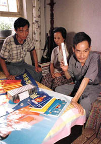 “法輪功”練功者的醒悟(一) ![]() 7月23日,石家莊市棉紡六廠退休工人孫金銘(右)在老伴伊素梅的陪同下,主動(dòng)將家里有關(guān)“法輪功”的書 籍、掛圖及錄音帶等交到家委會(huì)。孫金銘三年前因患糖尿病、腎病而開始練“法輪功”后,拒絕醫(yī)生的診治和服藥,身體日漸 消瘦,他老伴只好將藥物攙到飲料中哄著他喝下去,才勉強(qiáng)維持到今天。孫金銘連續(xù)三遍收看中央關(guān)于取締“法輪功”的決定 和李洪志真相的報(bào)道后,明白了“法輪功”是歪理邪說。新華社記者周文廣攝(傳真照片) |