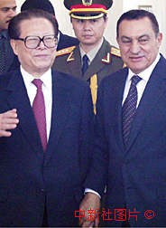 中國國家主席江澤民4月17日抵達埃及的亞歷山大,與埃及總統(tǒng)穆巴拉克會晤。中新社記者 彭偉祥 攝