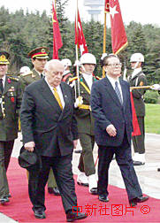 江澤民抵達(dá)安卡拉開始對(duì)土耳其進(jìn)行國(guó)事訪問 2000年4月20日 10:36 ![]() 土耳其總統(tǒng)德米雷爾在4月19日在總統(tǒng)府舉行儀式,熱烈歡迎江澤民對(duì)土耳其進(jìn)行國(guó)事訪問。中新社記者 彭偉祥 攝