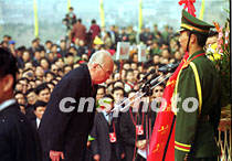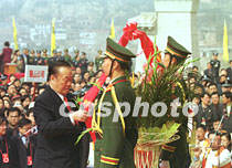 圖文:海內(nèi)外華夏子孫公祭黃帝陵 2001年4月6日 08:01 ![]() 陜西黃帝陵大祭祖。中新社記者 宋吉河 攝 ![]() 王光英向軒轅黃帝畫像敬獻花籃。中新社記者 宋吉河 攝 ![]() 萬國權(quán)向軒轅黃帝畫像敬獻花籃。中新社記者 宋吉河 攝 中新社西安四月五日電(王彥平)清明節(jié)的黃帝陵,雨后初霽,陽光普照,農(nóng)歷辛巳年公祭軒轅黃帝典禮今天在此隆重舉行。 今天在象征九五之尊的九點五十分,公祭典禮正式開始。全場肅立后,代表三十四個省、市、自治區(qū)和特別行政區(qū)的三十四響禮炮響起,人們的目光投向空中,仿佛在聆聽中國十二億九千五百萬華夏子孫和眾多海外同胞向中華人文初祖所要表達的殷殷懷念與追思。 海內(nèi)外各界參祭代表,在入口廣場肅立靜候片刻后,隨古樸、莊嚴的祭祀儀俯隊,過軒轅橋觀龍尾道,來到軒轅廟前。 隨后鼓樂齊鳴,在威武的禮儀士兵引領下,全國人大常委會副委員長王光英、全國政協(xié)副主席萬國權(quán)等分別向黃帝像敬獻花籃。 在身著盛裝的禮儀小姐們向始祖敬獻了鮮花、時果等祭品后,陜西省省長程安東恭讀了辛巳年清明公祭軒轅黃帝祭文。 最后,所有參祭的各界代表向黃帝像行三鞠躬大禮。(完) |
