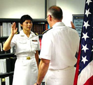 圖文:華人翁正欣將出任美太平洋司令部發(fā)言人 2001年6月4日 08:23 ![]() 中新網(wǎng)香港6月4日消息:幼年時(shí)自臺(tái)灣移民美國(guó)的現(xiàn)役美國(guó)海軍少校翁正欣,7月起將出任太平洋美軍司令部的新聞官。 據(jù)“中央社”報(bào)道,翁正欣生于云林水林鄉(xiāng),7歲隨父母移民美國(guó)。她說(shuō),她很高興到夏威夷任職,因?yàn)樗挠H戚都住在臺(tái)灣,而夏威夷離臺(tái)灣比較近。她十年前從美國(guó)海軍官校畢業(yè),今天晉升少校,同時(shí)領(lǐng)取華府天主教大學(xué)的政治學(xué)碩士學(xué)位。 翁正欣目前在五角大廈任職,職務(wù)是海軍新聞官。 她的父親翁義雄說(shuō),正欣選擇從軍,是因?yàn)樗吞郧霸诩偃粘5胶\姽傩K诘伛R里蘭州安納波利斯,太太羨慕官校女生穿著白色制服非常帥氣的樣子,正欣便決定效法,進(jìn)入海官就讀。翁義雄目前在馬里蘭州政府衛(wèi)生局任職。 翁正欣說(shuō),當(dāng)時(shí)從臺(tái)灣移民美國(guó)很不容易,她自認(rèn)能在美國(guó)成長(zhǎng)非常幸運(yùn),而選擇從軍部份是想要報(bào)效這個(gè)國(guó)家。她的丈夫約翰·桑默是她在官校的學(xué)長(zhǎng)。 |