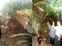圖:江西一村落發(fā)現(xiàn)巨形鐵樹(shù) 2001年07月12日 09:41 ![]() 江西省吉水縣盤(pán)谷鎮(zhèn)谷村,近日發(fā)現(xiàn)一株形態(tài)奇特的巨形鐵樹(shù),有關(guān)專家估測(cè),這株長(zhǎng)六米、徑寬近一米的鐵樹(shù)年歲在五百年以上。據(jù)說(shuō)有客商要出八萬(wàn)元錢收購(gòu)此樹(shù),而樹(shù)主胡桂秀認(rèn)為,鐵樹(shù)是鎮(zhèn)村之寶,不可賣出。中新社圖 張長(zhǎng)根 攝