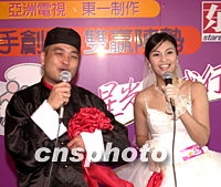 ![]() 香港亞洲電視·東一制作26日在香港舉行記者會(huì),宣布攜手制作電視節(jié)目《省港傾情男女》。該節(jié)目將會(huì)為天下男女牽動(dòng)紅線,招募中國大陸及香港男女參加的愛情搭檔節(jié)目。圖為該節(jié)目主持人葛民輝及姚安娜穿著傳統(tǒng)禮服婚紗介紹節(jié)目。中新社圖 鄧慶樂 攝