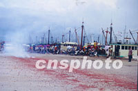 圖:休漁期結(jié)束漁民出海 2001年08月01日 19:50 ![]() 八月一日,休漁期結(jié)束;浳鞯娜傥迨覞O船在廣東茂名博賀漁港齊齊揚帆出海。中新社圖 姜玉峰 攝