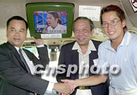組圖:譚詠麟公司為小巴乘客提供節(jié)目 2001年08月16日 09:25 ![]() 東方魅力主席譚詠麟、東方魅力執(zhí)行董事長黃勤道(左)、綠色專線小巴總商會主席邱戊秀(右二)、冠榮董事長馬亞木(左二)在記者會上介紹有關事宜。中新社傳真 鄧慶樂 攝 ![]() 東方魅力集團15日在香港宣布與綠色專線小巴總商會及冠榮車行有限公司攜手合作,為公共專線小巴乘客提供精彩娛樂資訊及廣告。東方魅力主席譚詠麟(右)、綠色專線小巴總商會主席邱戊秀(右)、冠榮董事長馬亞木為祝合作成功握手。中新社傳真 鄧慶樂 攝