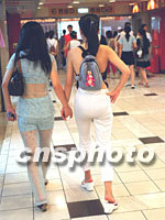圖:大連女鐘愛火熱透視裝 2001年08月28日 18:39 ![]() 國際服裝節(jié)開幕前夕,大連街頭時(shí)裝秀已經(jīng)拉開序幕,時(shí)尚女孩以火熱的透視裝,露背裝盡現(xiàn)青春氣息。中新社記者 王瑤 攝