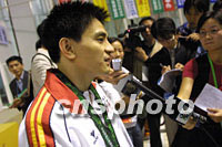 圖文:熊倪奪得三米板金牌 深情告別運動生涯 2001年11月16日 23:30 ![]() 包括肖海亮、王峰、王天凌等十位世界冠軍參賽的男子三米板之戰(zhàn)十六日晚落下帷幕,老將熊倪不負眾望摘得該項金牌。中新社記者 鄭萍萍 攝 ![]() 最后一次以運動員身份露面的老將熊倪,16日在九運會上摘取三米板金牌后被眾多媒體包圍采訪。中新社記者 鄭萍萍 攝