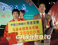 圖:廣東肇慶重獎(jiǎng)九運(yùn)會(huì)柔道冠軍冼東妹 2001年12月09日 18:58 ![]() 廣東肇慶四會(huì)籍選手冼東妹(左)在九運(yùn)會(huì)上奪得五十二公斤級(jí)柔道冠軍,肇慶四會(huì)市特別獎(jiǎng)勵(lì)她25000元人民幣。圖為市委書記龍紅輝八日親手把現(xiàn)金支票送到冼東妹手中。中新社圖 黃耀輝 攝 |