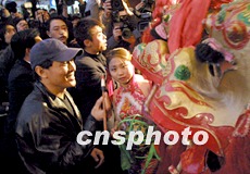 圖:李連杰在北京宣傳新作為舞獅點(diǎn)睛 2002年01月23日 20:25 ![]() 名揚(yáng)海外的“功夫皇帝”李連杰二十三日在北京新東安商場(chǎng)影視城為其新作《宇宙追緝令》做宣傳,一隊(duì)舞獅者在商場(chǎng)門前迎接闊別家鄉(xiāng)多年的李連杰,李連杰高興地為獅子點(diǎn)睛。中新社記者 李剛 攝 |