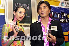 ![]() 歌影視紅星鄭伊健12日在香港應(yīng)邀出席三星Anycall SGH-T108彩色顯示手機發(fā)布會,鄭伊健繼續(xù)出任三星Anycall新手機代言人,并向媒體展示新手機。中新社圖 鄧慶樂 攝