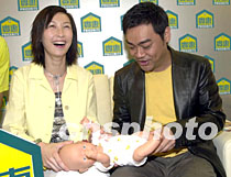 組圖:影星劉青云夫婦為實惠新店開幕剪彩 2002年04月20日 20:22 ![]() 影視紅星劉青云、郭藹明兩夫婦20日出席實惠家居用品新店開幕,實惠集團致送BB公仔予兩夫婦,喻意祝兩位早生貴子。劉青云為“BB”公仔試穿衣服,引得身旁的郭藹明哈哈大笑。鄧慶樂 攝