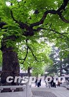圖:游人在潭柘寺娑羅樹下"沾仙氣" 2002年04月23日 10:49 ![]() 四月北京西郊潭柘寺院中的游人正在觀賞已具千年樹齡的娑羅樹。相傳此樹種源于印度,釋迦牟尼“寂滅”于娑羅雙樹之間,故佛門將此樹視為寶樹供養(yǎng)!版读_樹在返青季節(jié)凡人在樹下可“沾仙氣”的傳說,使得這里每年四月間都吸引游人在此駐足祈福。中新社記者 宋吉河 攝