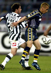 意大利杯:中田替補進球 帕爾馬1:2不敵老婦人 2002年04月26日 09:19 ![]() 中新網(wǎng)北京4月26日消息:在北京時間今天凌晨進行的意大利杯決賽首回合比賽中,老婦人尤文圖斯憑借板凳球員烏拉圭人薩拉耶塔的出色發(fā)揮,在主場2:1力擒帕爾馬。日本球星中田英壽本場比賽發(fā)揮出色,為帕爾馬攻入一球。 頂替特雷澤蓋上場的薩拉耶塔一個人就決定了這場比賽的結(jié)果。他先是在第6分鐘時在禁區(qū)內(nèi)為本隊獲得點球機會,由阿莫魯索操刀命中,尤文圖斯1:0。又在下半場57分鐘時,利用頭球為本隊貢獻一粒入球。 中田英壽在70分鐘時才獲得出場機會,當(dāng)時帕爾馬已經(jīng)0:2落后。上場不久,中田就有一腳精彩的射門,可惜被卡里尼封出底線。補時階段,中田英壽接馬爾基奧尼妙傳傳,一記右腳凌空為帕爾馬扳回一分。 賽后,尤文圖斯主帥銀狐里皮說:“我們應(yīng)該獲勝,因為在整個上半場和下半場的大部分時間里我們都占據(jù)了場上優(yōu)勢”! 而帕爾馬教練卡爾米尼亞尼也對比賽結(jié)果表示滿意,“中田在補時階段的進球,又讓我們?nèi)计鹆藠Z取意大利杯的希望”。 雙方第二回合較量將于六月十一日在帕爾馬的主場進行。 是役雙方出場陣容如下: 帕爾馬(3-4-2-1):塔法雷爾/杰圖(古倫科,第46分鐘),博戈西昂,貝納里沃/薩托,阿皮亞(中田英壽,第73分鐘),拉穆齊,迪亞納/馬爾基奧尼,米庫/哈坎-蘇克(博納佐利,第58分鐘) 尤文圖斯(4-3-1-2):卡里尼/圖拉姆、圖多爾(蒙特羅,第46分鐘),比林德利,帕拉馬蒂/C.澤諾尼,孔蒂,戴維斯(塔奇納迪,第58分鐘)/內(nèi)德維德(贊布羅塔,第46分鐘)/薩拉耶塔,阿莫魯索