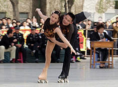 圖:中國(guó)花樣輪滑精英賽上海輪滑隊(duì)獲冠軍 2002年05月08日 10:15 ![]() 七日,在中國(guó)吉林市舉行的中國(guó)花樣輪滑精英賽上,上海輪滑隊(duì)選手田柳、林峰獲得雙人滑短節(jié)目冠軍。中新社圖 韓丹 攝