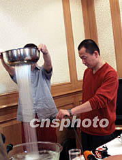 圖:譚盾演奏“多媒體音樂” 2002年05月17日 14:33 ![]() 剛剛獲得格萊美獎的知名音樂家譚盾十七日現(xiàn)身滬上,并帶來了他獨(dú)特的“多媒體音樂”。圖為譚盾通過自己發(fā)明的半球形透明水盆,和外國音樂家一起演奏《永恒之水協(xié)奏曲》。孫璐 攝