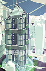 圖:紐約世貿(mào)大樓重建設(shè)計(jì)層出不窮 2002年05月21日 09:34 ![]() 隨著世貿(mào)廢墟清理工作接近結(jié)束,有關(guān)世貿(mào)大樓重建的設(shè)計(jì)開始引人注目,設(shè)計(jì)方案層出不窮。日前,巴哈馬的新西蘭商人德里克在紐約把來自夢中的創(chuàng)意展現(xiàn)給公眾,環(huán)狀、杯狀以及瓶蓋形狀是這一設(shè)計(jì)的最初幾何元素。經(jīng)過專業(yè)建筑師的修飾,人們現(xiàn)在看到的是一個(gè)一百一十一層高、帶著“金字塔”帽子、由四個(gè)圓柱型塔樓組成的醒目的建筑體。趙海燕 攝
