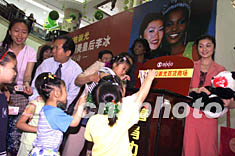 ![]() 亞洲美皇后李冰(右一)與世界小姐達雷戈,二十一日在北京莊勝崇光商場參加關(guān)愛孤殘兒童慈善行動,并在現(xiàn)場捐款。毛建軍 攝
