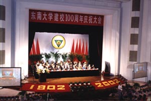 江澤民李鵬李瑞環(huán)為東南大學百年華誕題詞致賀 2002年06月01日 09:40 ![]() 東南大學建校100周年慶祝大會主會場 5月31日是東南大學建校一百周年的喜慶日子。樹木蒼翠、碧草茵茵的東大校園早早披上了節(jié)日的盛裝,四萬多名師生與海內(nèi)外校友在久負盛名的大禮堂以及各分會場隆重集會,共慶母校百年華誕。 江澤民總書記為東南大學校慶的題詞是:“嚴謹求實,團結奮進,把東南大學建設成一流人才和創(chuàng)新成果的培育基地”。李鵬的題詞是:“傳承百年優(yōu)良傳統(tǒng),培育更多建國人才”;李瑞環(huán)的題詞是:“求是篤行,育才報國”。李鐵映、許嘉璐、費孝通,原中央大學校長顧毓琇等也為東南大學百年校慶題詞。 全國政協(xié)副主席錢偉長,全國政協(xié)科教文衛(wèi)體委員會主任劉忠德,江蘇省有關領導陳煥友、曹克明,諾貝爾獎獲得者丁肇中,國家地震局局長宋瑞祥,教育部副部長周濟、韋鈺,科技部副部長劉燕華等出席了慶典大會。 國家教育部部長陳至立,中共江蘇省委書記回良玉、鐵道部部長傅志寰,中國工程院士丁衡高上將,臺灣“中央大學”校長劉兆漢專門發(fā)來了講話錄像或賀電。 大會由東南大學黨委書記胡凌云教授主持。東南大學校長顧冠群院士在慶祝大會上作了題為“秉承百年優(yōu)良傳統(tǒng),開創(chuàng)世紀新的輝煌”的報告。他說,東南大學肇始于1902年創(chuàng)立的三江師范學堂,此后,歷經(jīng)兩江師范學堂、南京高等師范學校、國立東南大學、國立中央大學、南京工學院等重要發(fā)展時期,走過了一百年征程。現(xiàn)在的東南大學有10個國家重點學科,13個一級學科博士學位授權點,53個二級學科博士點;10個博士后科研流動站;現(xiàn)學校共有40多個院、系,104個碩士點,52個本科專業(yè),是一所以工為主,工、理、醫(yī)、文、管多學科協(xié)調(diào)發(fā)展的全國重點大學。學,F(xiàn)有兩院院士7位,國家攀登計劃認知科學重大項目首席科學家1人,國家杰出青年基金獲得者8人,國家“百千萬人才工程”培養(yǎng)對象7人,國家“863”計劃領域?qū)<椅瘑T會和主題專家組成員7人,國家重點基礎研究發(fā)展規(guī)劃(973)專家顧問組成員1人,教育部跨世紀人才基金獲得者13人,江蘇省“333工程”培養(yǎng)對象72人!伴L江學者獎勵計劃”特聘教授崗位16個,現(xiàn)已聘特聘教授14人。百年東大,可謂是我國近現(xiàn)代高等教育發(fā)展的縮影。百年東大,為推動中國現(xiàn)代化進程和社會發(fā)展發(fā)揮了重要作用。校訓“止于至善”所寓意的追求盡善,追求完美,追求真理的辦學理念,已銘刻在今日東大人的心中。新的百年,我們必須培養(yǎng)大批具有創(chuàng)新精神和實踐能力的高級人才,使東大始終成為社會、經(jīng)濟和科技進步與發(fā)展的思想庫和動力源。到21世紀中葉力爭把東南大學建設成為綜合性、研究型、國際化的世界一流大學。 最后,教育部副部長周濟在慶祝大會上發(fā)表講話,他希望東南大學樹立開放式辦學理念,通過為社會尤其是為江蘇提供全方位高水平的服務,來贏得支持,開拓學校改革與發(fā)展的廣闊空間。 美國馬里蘭大學校長牟德教授、重慶大學校長吳中福教授分別代表海內(nèi)外兄弟大學在會上致辭,飛利浦公司執(zhí)行副總裁萬德坡先生以及教師代表和學生代表等也在大會上講話或發(fā)言。印度尼西亞力寶集團董事長李文正先生也出席了大會。 5月31日,在20世紀偉大的物理學家吳健雄先生誕辰90周年之際,一座旨在彰顯其輝煌的科學業(yè)績和高尚的道德風范的紀念館在其母校東南大學隆重開館,為沉浸在建校100周年的喜慶氣氛中的東南大學增添了又一道亮麗的風景。國家教育部部長陳至立為吳健雄紀念館開館發(fā)來賀電。出席百年慶典大會的領導和嘉賓參加了開館儀式。中共江蘇省委副書記任彥申、華裔諾貝爾獎獲得者丁肇中博士、東南大學校長顧冠群院士、吳健雄先生之子袁緯承先生在儀式上致辭。 吳健雄是世界公認的最杰出的女性物理學家、世界物理學界的傳奇人物,被譽為“核子物理女皇”、“中國的居里夫人”。她1912年5月31日出生于江蘇太倉瀏河,1930年以優(yōu)異成績被保送到東南大學前身——國立中央大學數(shù)學系,1931年轉(zhuǎn)入物理系。1936赴美深造。1957年她通過實驗首次驗證了“弱相互作用下宇稱不守恒”的理論,從而使李政道、楊振寧榮獲了當年的諾貝爾物理學獎。1997年2月16日,吳健雄在紐約家中去世。1999年,為紀念吳健雄偉大的一生及輝煌的科學業(yè)績,使她的科學精神和人格風范能長駐天地,激勵后學,中共中央、國務院批準在其母!獤|南大學校園內(nèi)建造吳健雄紀念館,這也是全球第一個華人科學家紀念館。 東南大學編輯出版的《吳健雄:獻身物理科學的一生》紀念畫冊首發(fā)式也與吳健雄紀念館開館儀式同時舉行。該畫冊由全國人大副委員長周光召院士題寫書名,李政道、楊振寧、丁肇中等六位諾貝爾獎獲得者分別為畫冊題詞。(鄭立琪、周 虹)