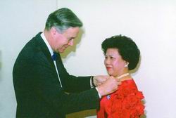 廣州籍旅法華僑黃國(guó)平女士獲“法國(guó)騎士勛章” 2002年06月12日 17:12 ![]() 《信息時(shí)報(bào)》供圖 中新網(wǎng)廣州6月12日消息:據(jù)《信息時(shí)報(bào)》報(bào)道,近日,一個(gè)特別的授勛儀式在廣州二沙島的一家會(huì)所舉行,法國(guó)駐華大使皮埃爾·毛磊專程從北京來(lái)到廣州,代表法國(guó)總統(tǒng)向一位廣州人——法國(guó)-廣東協(xié)會(huì)副會(huì)長(zhǎng)黃國(guó)平女士頒發(fā)了“法蘭西國(guó)家功勛騎士勛章”。 法國(guó)外交部長(zhǎng)于貝·韋德林在致黃女士的賀信中稱,法國(guó)總統(tǒng)頒發(fā)該獎(jiǎng)項(xiàng),是為了感謝黃女士“對(duì)法中文化和藝術(shù)交流領(lǐng)域做出的杰出貢獻(xiàn)”。 據(jù)了解,黃女士還是首個(gè)獲此榮譽(yù)的中國(guó)公民。昨日,記者對(duì)她進(jìn)行了獨(dú)家采訪。 黃女士祖籍廣東肇慶,出身于一個(gè)僑商家庭,從小在廣州長(zhǎng)大,20世紀(jì)60年代畢業(yè)于廣州執(zhí)信中學(xué),她的丈夫李萬(wàn)鈞以前在廣州中山大學(xué)外語(yǔ)系任教,可謂是地道的廣州人。1984年,黃女士跟隨丈夫移居法國(guó)。 移居后,經(jīng)過(guò)一段時(shí)間的艱苦奮斗,黃女士終于有了自己的事業(yè)。1995年,黃女士當(dāng)選成為法國(guó)廣(東)肇(慶)同鄉(xiāng)會(huì)的副會(huì)長(zhǎng),開(kāi)始積極組織中法文化交流。 貼錢開(kāi)辦漢語(yǔ)講座 黃女士最難忘的就是她第一次組織的中法文化交流活動(dòng)——漢語(yǔ)講座。1996年,她專門聘請(qǐng)廣州外國(guó)語(yǔ)學(xué)院漢學(xué)教授朱匡侯去法國(guó)開(kāi)中文講座,但想不到一開(kāi)始就遇到了很大阻力。 以前,法國(guó)的大部分華僑、華人多年來(lái)更熱衷于求神拜佛與旅游,對(duì)文化活動(dòng)不很關(guān)心。要開(kāi)漢語(yǔ)講座的消息傳出后,同鄉(xiāng)會(huì)中的不少人都對(duì)此不理解。但是黃女士看到,中國(guó)的電影《黃土地》和《紅高梁》等在法國(guó)放映后,法國(guó)人就認(rèn)為,中國(guó)就是那樣貧窮落后,這令黃女士覺(jué)得很不舒服,她決心要把中國(guó)的文化介紹到法國(guó)去,讓法國(guó)主流社會(huì)對(duì)中國(guó)有越來(lái)越多的了解。最后,她還是決定自己出錢出力辦這件事。 黃女士為每一個(gè)參加講座的孩子都準(zhǔn)備了禮物,并親自包好。中文學(xué)得好的孩子,還可以得到500法郎的獎(jiǎng)金。另外,她還邀請(qǐng)中國(guó)駐法國(guó)的大使夫人、教育參贊出席這次講座。結(jié)果講座的那天雖然下著大雪,但座無(wú)虛席,還需要加位。法國(guó)華僑的孩子們齊聲朗誦唐詩(shī),講座獲得很好的效果。 令粵劇迷住法國(guó)人 此后,黃女士更加專注于中法之間的文化交流活動(dòng)。她創(chuàng)立了法國(guó)-廣東協(xié)會(huì),丈夫任會(huì)長(zhǎng),自己任常務(wù)副會(huì)長(zhǎng)。上世紀(jì)90年代,黃女士回到廣州后,對(duì)粵劇產(chǎn)生了濃厚的興趣,開(kāi)始專心致志地學(xué)唱粵劇,并被行家發(fā)現(xiàn)其嗓音極具潛質(zhì),被人稱為“巴黎紅線女”,因?yàn)樗纳ひ襞c紅線女很相似,唱到高音部分仍能迂回婉轉(zhuǎn)。 今年3月,在黃女士的協(xié)助下,廣州市文化局和廣州服裝協(xié)會(huì)的代表團(tuán)在巴黎舉辦了文藝節(jié)目和時(shí)裝表演的專場(chǎng)演出。廣州的粵劇名家在法國(guó)上千名各界代表面前,開(kāi)腔獻(xiàn)唱,使自詡身處世界文化藝術(shù)中心的巴黎人為之傾倒。 隨著廣州向國(guó)際化大城市發(fā)展,建立廣州歌劇院被提到了議事日程。黃女士幫助廣州的代表團(tuán)到巴黎歌劇院進(jìn)行考察,她還提供自己的別墅供廣州的代表團(tuán)使用。后來(lái),多家法國(guó)設(shè)計(jì)公司積極為廣州歌劇院提供設(shè)計(jì)方案,并與廣州結(jié)緣。在廣州新體育館初建時(shí),就采用了法國(guó)設(shè)計(jì)大師安德魯?shù)姆桨浮?/p> 幫廣州雜技團(tuán)找鍋 前年圣誕節(jié)前夕,廣州雜技團(tuán)赴巴黎演出。演出期間,黃女士與正在巴黎訪問(wèn)的陳傳譽(yù)副市長(zhǎng)一道對(duì)廣州雜技團(tuán)進(jìn)行慰問(wèn)。在慰問(wèn)中,黃女士偶然發(fā)現(xiàn),由于雜技團(tuán)的駐地禁止明火煮食,雜技團(tuán)的工作人員只好用電平底鍋煮飯,但由于這種鍋不能炒菜,因而無(wú)法滿足雜技團(tuán)所有人員的胃口。連日來(lái),演員們?cè)谛量啾硌葜,只能生吃黃瓜、番茄等蔬菜。黃女士看到以后非常心疼。第二天,她就和丈夫驅(qū)車在巴黎找可以用來(lái)炒菜的電炒鍋。但電炒鍋在巴黎是十分罕見(jiàn)的商品,結(jié)果黃女士幾乎找遍整個(gè)巴黎后,才在一家經(jīng)營(yíng)中國(guó)廚具的小店買到。這令雜技團(tuán)的工作人員十分感動(dòng)。 沒(méi)想到,就在圣誕節(jié)的第二天,一場(chǎng)龍卷風(fēng)把雜技團(tuán)表演場(chǎng)地的帳篷、表演設(shè)備全部刮走,令演出無(wú)法進(jìn)行。黃女士馬上前往慰問(wèn),并多方聯(lián)系。最后,經(jīng)過(guò)演出商和黃女士的努力,雜技團(tuán)的表演得以繼續(xù)。黃女士還買了80多份圣誕禮物,讓中國(guó)駐法大使吳建民一一送到雜技團(tuán)成員的手中。 最后,廣州雜技團(tuán)的表演獲得巨大成功,在巴黎連續(xù)演出78場(chǎng),創(chuàng)下了單個(gè)藝術(shù)團(tu