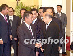 澳門政府與永利渡假村(澳門)股份有限公司簽約 2002年06月25日 08:33 ![]() 澳門特區(qū)行政長(zhǎng)官何厚鏵二十四日與永利度假村(澳門)股份有限公司簽署協(xié)議后,與永利部分股東握手。李剛 攝