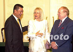 ![]() 澳門特區(qū)行政長官何厚鏵二十六日輿銀河簽署協(xié)議后,和美國拉斯維加斯金沙公司董事長、銀河主要股東肖登·艾德森夫婦親切交談。中新社記者 李剛 攝