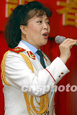 ![]() 由150人組成的中國人民解放軍軍樂團(tuán)強(qiáng)大陣容,7月6日晚將在香港紅磡體育館演出。7月4日下午,中國著名女高音歌唱家韓芝萍大校為來賓演唱演出晚會(huì)歌曲。任晨鳴 攝