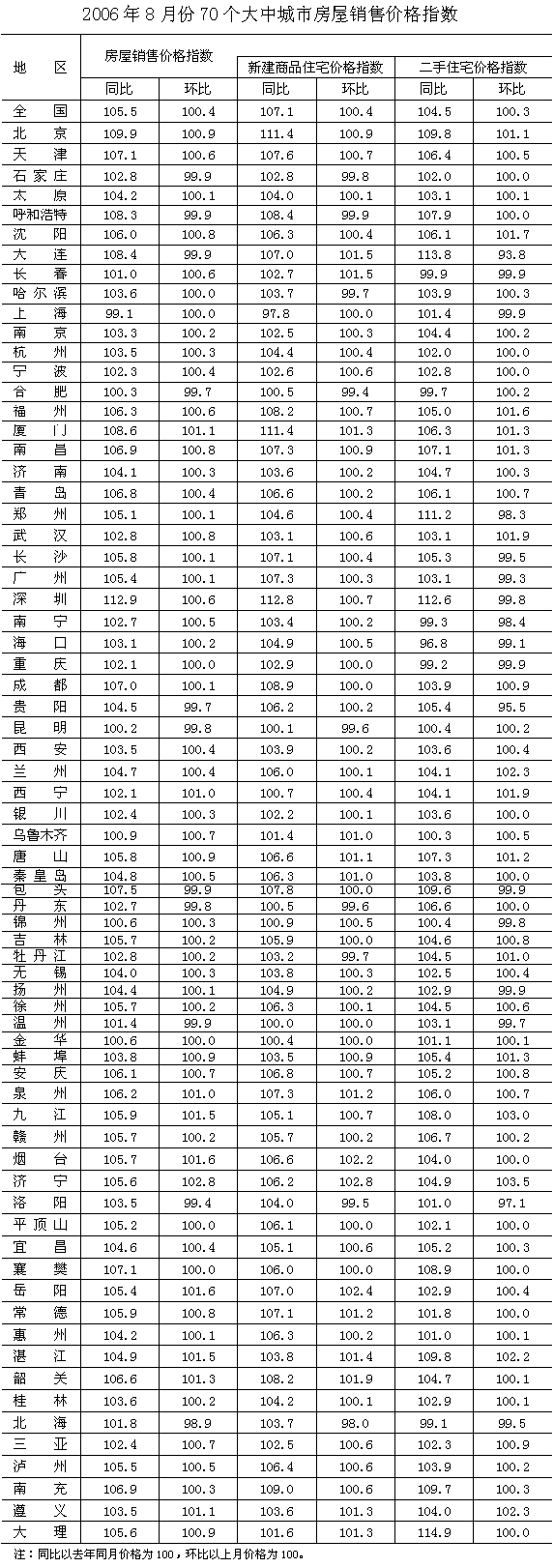數(shù)據(jù)顯示,新建商品住宅銷售價格同比上漲7.1%,漲幅比上月高0.4個百分點。與去年同月相比,經(jīng)濟適用房、高檔住宅銷售價格分別上漲4.1%和8.3%,漲幅均比上月低0.6個百分點;普通住宅銷售價格上漲6.6%,漲幅比上月高1.1個百分點。與上月相比,經(jīng)濟適用房銷售價格止跌轉升,上漲0.2%;普通住宅、高檔住宅銷售價格分別上漲0.4%和0.5%,漲幅比上月分別低0.1和0.4個百分點。分地區(qū)看,與去年同月相比,新建商品住宅銷售價格上漲的城市有68個,約占全部調查城市的97%,只有溫州住宅銷售價格持平,上海下降2.2%。與上月相比,新建商品住宅銷售價格上漲的城市有52個,約占全部調查城市的74%。