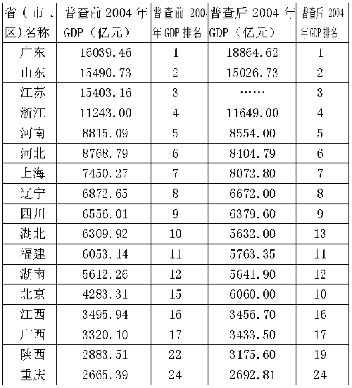 從此次經(jīng)濟(jì)普查結(jié)果來(lái)看,經(jīng)國(guó)家統(tǒng)計(jì)局抽查,數(shù)據(jù)填報(bào)的綜合差錯(cuò)率僅為4.9‰,讓這些注水?dāng)?shù)字無(wú)所遁形,于是共有12個(gè)省2004年GDP數(shù)字將下調(diào)。