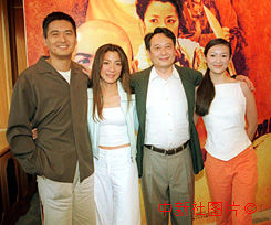 導(dǎo)演李安、影星周潤發(fā)、楊紫瓊、及章子怡26日在香港出席影片“藏龍臥虎 ”記者會。中新社傳真 鄧慶樂 攝