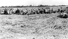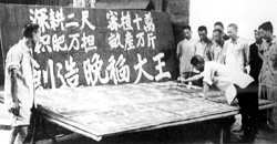 雞公山水稻畝產(chǎn)四萬(wàn)八真相 2000年7月7日 14:09 ![]() 安徽省樅陽(yáng)縣一塊號(hào)稱畝產(chǎn)1·6萬(wàn)斤的 “衛(wèi)星田”。田里的稻子是從各地移來的 ![]() 大躍進(jìn)中,農(nóng)民表決心。照片據(jù)《圖片中國(guó)百年史》 □張勝林(河南信陽(yáng)) 1958年9月1日,信陽(yáng)縣雞公山人民公社新集大隊(duì)放出河南省水稻畝產(chǎn)特大“衛(wèi)星”:6畝6分3厘干部水稻試驗(yàn)田總產(chǎn)324375·5斤,平均畝產(chǎn)48925·7斤。這顆大“衛(wèi)星”升天后,新華社隨即發(fā)了消息,轟動(dòng)全國(guó)。全省各級(jí)領(lǐng)導(dǎo)親臨參觀和總結(jié)經(jīng)驗(yàn),9月9日《河南日?qǐng)?bào)》第二版以“雞公山上紅旗插,水稻畝產(chǎn)四萬(wàn)八”的醒目標(biāo)題,對(duì)大“衛(wèi)星”的組織施放作了詳細(xì)報(bào)道。 這個(gè)被大躍進(jìn)狂風(fēng)吹起來的水稻“衛(wèi)星”,雖在當(dāng)時(shí)被歌頌為信陽(yáng)人民農(nóng)業(yè)大躍進(jìn)的偉大創(chuàng)舉,卻留下了一個(gè)謎:照“衛(wèi)星”田里的水稻總產(chǎn)量計(jì)算,那么,這塊“衛(wèi)星”田平均每平方米就得產(chǎn)出稻谷73斤。然而,73斤稻谷就是放在一平方米的空地里,也要堆出一定高度,何況稻谷結(jié)在稻穗上,直徑3毫米左右的稻莖又如何承受得了呢? 為了解開這個(gè)謎,我們對(duì)當(dāng)年目睹現(xiàn)場(chǎng)的一些同志進(jìn)行了反復(fù)調(diào)查訪問。在調(diào)訪過程中,這些同志不僅幫助我們弄清了雞公山水稻畝產(chǎn)“四萬(wàn)八”的真相,而且訴說了雞公山人民當(dāng)年吞下這個(gè)苦果的難言之苦。信陽(yáng)縣越改越大的躍進(jìn)規(guī)劃 1957年,信陽(yáng)縣和全國(guó)一樣,勝利實(shí)現(xiàn)和超額完成了國(guó)民經(jīng)濟(jì)第一個(gè)5年計(jì)劃,各條戰(zhàn)線出現(xiàn)了蓬勃發(fā)展的局面。然而,由于從上到下對(duì)成績(jī)的宣傳夸張,使一些干部的頭腦發(fā)熱,在指導(dǎo)方針上出現(xiàn)了急于求成的“左”的冒進(jìn)。1958年2月26日,中共信陽(yáng)縣委召開擴(kuò)大會(huì)議,制定并通過了《信陽(yáng)縣全面躍進(jìn)20條規(guī)劃》,號(hào)召和動(dòng)員全縣人民投入到大躍進(jìn)的洪流之中。 1958年5月,黨的八大二次會(huì)議通過總路線:“鼓足干勁,力爭(zhēng)上游,多快好省地建設(shè)社會(huì)主義”,在信陽(yáng)縣宣傳貫徹后,信陽(yáng)掀起了大躍進(jìn)的高潮。同月底,中共信陽(yáng)縣委、縣人委對(duì)《信陽(yáng)縣全面躍進(jìn)20條規(guī)劃》進(jìn)行了補(bǔ)充修改,把1958年全縣糧食總產(chǎn)量從原規(guī)劃的8·5億斤提高到“保證實(shí)現(xiàn)14億斤,爭(zhēng)取18億斤”(這樣驚人的數(shù)字,信陽(yáng)縣不僅當(dāng)年沒有實(shí)現(xiàn),就是時(shí)隔30多年后農(nóng)業(yè)年景比較好的1996年,全縣糧食總產(chǎn)量也才達(dá)到9·5億斤,為1958年規(guī)劃14億斤的67·8%)。同時(shí),中共信陽(yáng)縣委還提出“十年規(guī)劃,一年實(shí)現(xiàn)”的躍進(jìn)口號(hào)。外地衛(wèi)星的刺激 1958年6月,廣東省早稻畝產(chǎn)82525斤和河南省西平縣小麥畝產(chǎn)7320斤,這兩顆“衛(wèi)星”消息傳到信陽(yáng)縣后,信陽(yáng)縣感到鼓舞和震動(dòng)。7月5日,中共信陽(yáng)縣委召開擴(kuò)大會(huì)議,縣委提出:“必須認(rèn)識(shí)到今年是農(nóng)業(yè)生產(chǎn)大躍進(jìn)的一年,不是要求增產(chǎn)幾成的問題,而是要翻幾番。因此,必須鼓足干勁,爭(zhēng)取更大勝利”。為了放出信陽(yáng)縣的農(nóng)業(yè)高產(chǎn)“衛(wèi)星”,縣委要求“樹立敢想、敢說、敢作、敢為的前進(jìn)思想,從而解放思想,破除迷信”。 7月,全國(guó)宣傳貫徹毛澤東主席關(guān)于把工、農(nóng)、商、學(xué)、兵組成為一個(gè)大公社的指示,信陽(yáng)縣聞風(fēng)而動(dòng),在全信陽(yáng)地區(qū)率先建立人民公社。7月22日,中共信陽(yáng)縣委在雞公山召開擴(kuò)大會(huì)議,決定撤銷全縣32個(gè)鄉(xiāng)、鎮(zhèn)及一個(gè)辦事處,成立12個(gè)人民公社?h委要求,各公社要借人民公社化的東風(fēng),更好組織農(nóng)業(yè)生產(chǎn)大躍進(jìn),并示意試辦農(nóng)業(yè)“衛(wèi)星”田塊。 縣委擴(kuò)大會(huì)議結(jié)束后,各公社開始籌劃具有本地特色的農(nóng)業(yè)“衛(wèi)星”,棉花、玉米、紅薯等都被列入“衛(wèi)星”計(jì)劃之列。雞公山準(zhǔn)備水稻“衛(wèi)星” 在籌劃“衛(wèi)星”時(shí),地處豫鄂交界的雞公山人民公社黨委提出,淮河北的西平縣能放出小麥畝產(chǎn)七千三的全國(guó)大“衛(wèi)星”,我們淮河南的雞公山為何不能利用我們盛產(chǎn)水稻的優(yōu)勢(shì),放出水稻高產(chǎn)“衛(wèi)星”?只要有雄心,思想再解放,“衛(wèi)星”定能升天。為了選準(zhǔn)“衛(wèi)星”的試點(diǎn),公社黨委曾幾次召開會(huì)議研究,最終選擇新集大隊(duì)的一塊6畝6分3厘干部試驗(yàn)田作為“衛(wèi)星”點(diǎn)。 這塊試驗(yàn)田在5月5日秧苗移栽時(shí),采用了3×3(行距、株距各3寸)的密植法,加之向這塊試驗(yàn)田投放的肥料較多,公社黨委因之認(rèn)為,這為我們秋收放“衛(wèi)星”奠定了基礎(chǔ)(經(jīng)過實(shí)踐證明,3×3的密植法是一種違反科學(xué)的技術(shù)躍進(jìn),它不僅破壞了光合作用,而且也不