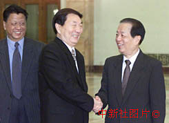 中國國務(wù)院總理朱镕基12日離開北京,前往日本、韓國訪問,并出席在漢城舉行的第三屆亞歐會議。國務(wù)院副總理錢其琛等在北京人民大會堂送行。中新社記者 毛建軍 攝