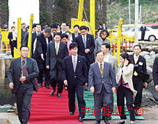 中國國務(wù)院總理朱镕基在結(jié)束對日本、韓國的訪問之前,在濟州島作短暫停留。中新社記者 王曉暉 攝