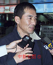 第九屆中國金雞百花電影節(jié)近日將在南寧舉行。圖為電影《生死抉擇》中的男主角15日在南寧機場接受記者采訪。中新社記者 錢興強 攝