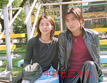歌星謝霆鋒22日在港島維園拍攝電影《漫畫風(fēng)云》外景,休息期間與一名日藉歌迷合照。中新社傳真鄧慶樂(lè)攝