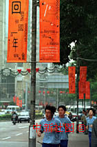 澳門新口岸馬路燈柱上裝飾出澳門回歸字樣條幅,為即將迎來回歸一周年的澳門街頭增添了節(jié)日氣氛。中新社記者 滿會喬 攝
