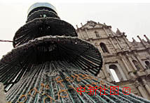 圖文:大三巴牌坊前擺放圣誕樹 2000年12月13日 11:18 ![]() 澳門大三巴牌坊前擺放出一棵高大的圣誕樹,為回歸一周年紀(jì)念前的澳門增添了歡樂的氣氛。中新社記者 滿會喬 攝
