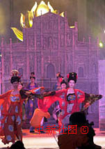 圖文:慶澳門回歸一周年文藝晚會(huì)3 2000年12月12日 09:35 ![]() 大三巴牌坊為背景的古代服飾表演.為慶祝澳門回歸一周年,中央電視臺(tái)心連心藝術(shù)團(tuán)十一日晚在澳門蓮花廣場舉辦“流光溢彩濠江情”文藝晚會(huì),圖為以大三巴牌坊為背景的古代服飾表演。中新社傳真 宗金柱 攝