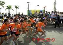 圖片:澳門中華總商會(huì)青年委員會(huì)舉行一系列慶祝活動(dòng) 2000年12月18日 15:42 ![]() 澳門回歸一周年到來之際,澳門中華總商會(huì)青年委員會(huì)十七日舉行一系列慶;顒(dòng),圖為在觀音像前舉辦的環(huán)湖長跑比賽。中新社傳真 宗金柱攝