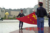 圖文:澳門警察在蓮花廣場(chǎng)彩排時(shí)疊好國旗 2000年12月18日 16:04 ![]() 澳門警察在蓮花廣場(chǎng)彩排時(shí)疊好國旗。澳門特區(qū)政府將于十二月二十日舉行盛大的升旗儀式,以慶;貧w祖國一周年,圖為當(dāng)?shù)鼐焓迦赵谏徎◤V場(chǎng)彩排時(shí)疊好國旗。中新社傳真宗金柱攝