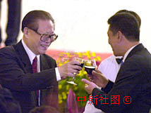 江澤民與何厚鏵舉杯祝賀 2000年12月19日 20:26 ![]() 國家主席江澤民十九日出席澳門特別行政區(qū)成立一周年慶祝晚宴,并與行政長官何厚鏵舉杯祝賀。中新社傳真 宗金柱攝