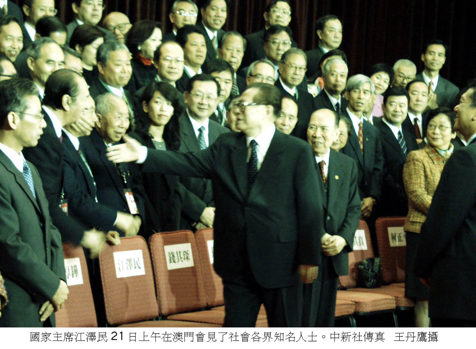 特寫:江澤民主席與澳門各界知名人士談心 2000年12月21日 14:34 ![]() 國(guó)家主席江澤民21日上午在澳門會(huì)見(jiàn)了社會(huì)各界知名人士 中新社澳門十二月二十一日電題:特寫:“冬天來(lái)了,春天還會(huì)遠(yuǎn)嗎?”──江澤民主席與澳門各界知名人士談心
