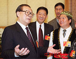 江澤民與青海人大代表共話西部開發(fā) 2000年3月6日 08:41 ![]()