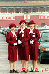 人大政協(xié)會議服務(wù)員在天安門廣場留影 2000年3月6日 08:52 ![]()