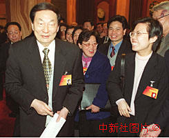 朱镕基總理到九屆全國(guó)人大三次會(huì)議湖南團(tuán)