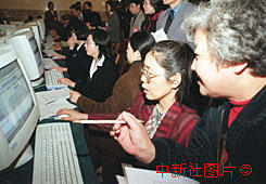 人大代表董(金+監(jiān))昭在電腦上查閱資料 2000年3月7日 08:51 ![]()