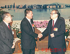 江澤民與澳門特區(qū)行政長(zhǎng)官何厚鏵握手交談 2000年3月9日 08:49 ![]()