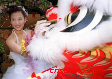 影視紅星蔡少芬為婚紗攝影店開業(yè)舞獅點晴
