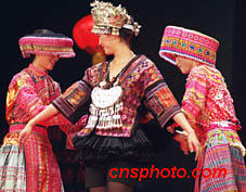 中國新絲路模特赴德國表演團,二十二日在北京嘉里中心飯店舉行專場展示。圖為模特展示中國歷代少數(shù)民族服飾作品。中新社圖 東方 攝