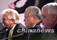 亞洲論壇新聞中心二十六日在中國海南省博鰲舉行記者招待會,中國的全國政協(xié)副主席陳錦華、哈薩克斯坦前總理捷列先科、澳大利亞前總理霍克答中外記者問。中新社記者 賈國榮 攝