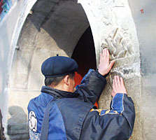 這是一位市民在北京白云觀中“摸猴”。按民間說法,在這里“摸猴”可獲得好運。